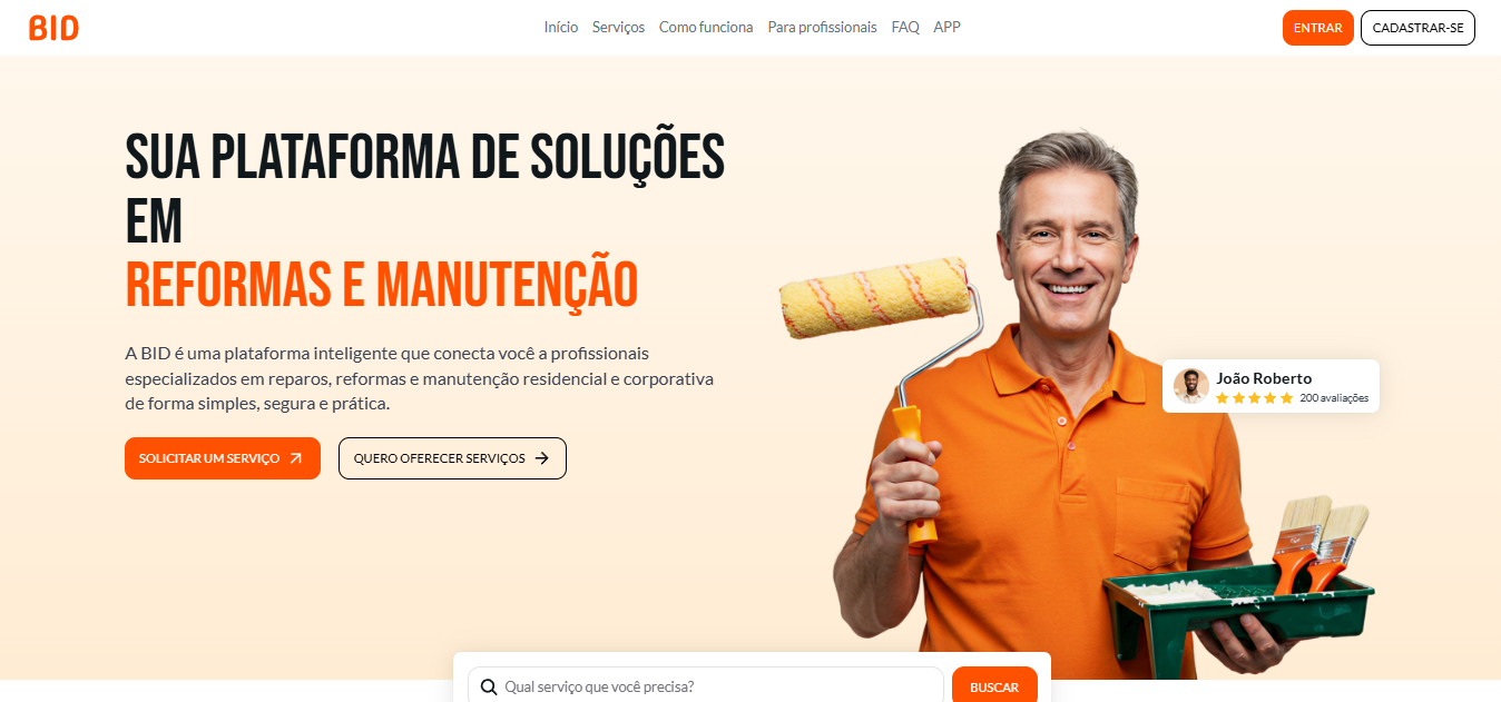 Construção de uma plataforma de conexão entre profissionais (especialmente da construção civil) e clientes que buscam serviços.